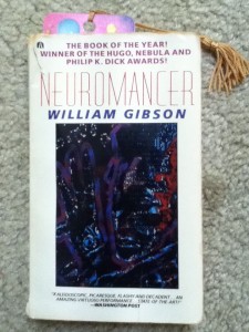 Fish argues that digital humanists’ insistence on the networked character of human communication (or even human identity) makes them a) postmodern, b) theological, in the sense that they’re promising a transcendence of individual mortality, and c) political in an explicitly leftist way. In making these points, he cites about 2.5% of the people in my Twitter stream, which is one reason why I like the column. The cover of Neuromancer that I remember. I may not have copyright to this image, but file-sharing is part of my religion.