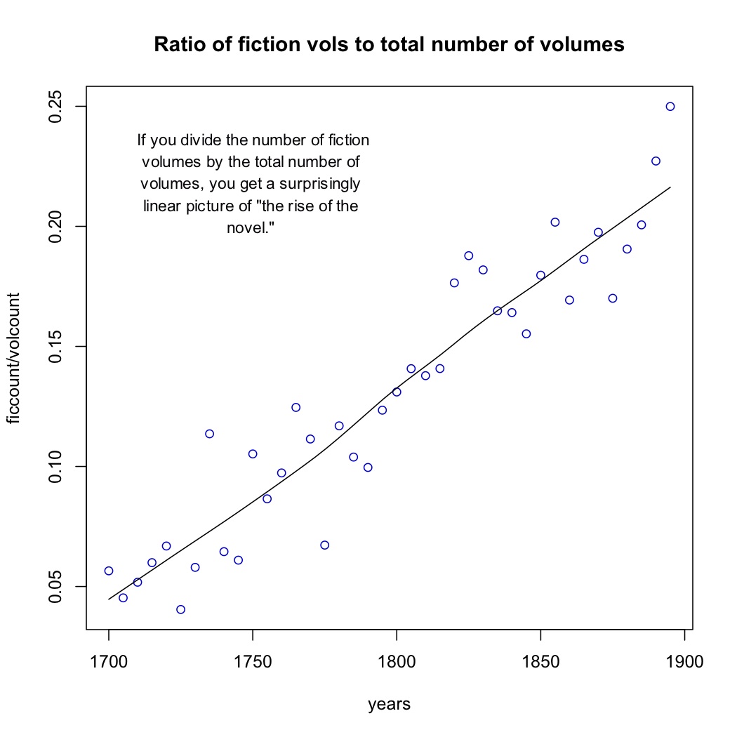 In recent months I’ve had several conversations with colleagues who are friendly to digital methods but wary of claims about novelty that seem overstated. They believe that text mining can add a new level of precision to our accounts of literary history, or add a new twist to an existing debate. They just don’t think it’s plausible that quantification will uncover fundamentally new evidence, or patterns we didn’t previously expect.