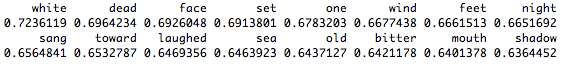 What’s the goal uniting all this experimentation? I suspect there are two different but equally valid goals. In some cases, we’re going to find patterns that actually function as evidence to support literary-historical arguments. (In a number of the examples cited above, I think that’s starting to happen.) In other cases, text mining may work mainly as an exploratory technique, revealing clues that need to be fleshed out and written up using more traditional critical methods. The boundary between those two applications will be hotly debated for years, so I won’t attempt to define it here.