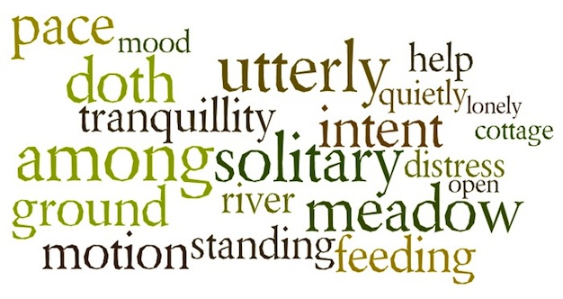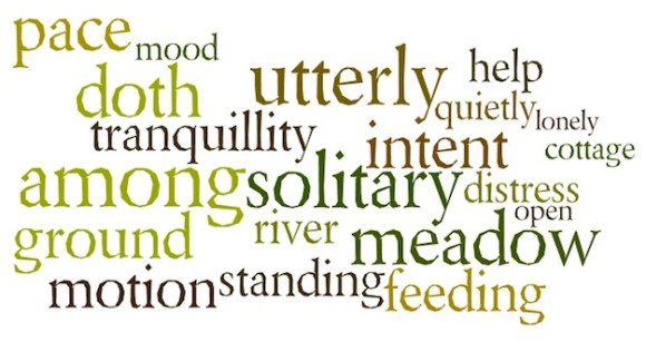 I think the apparent connection between sociolinguistic and thematic issues is the really interesting part of this. It begins to hint that the broader shift in poetic diction (using words from the older part of the lexicon to differentiate poetry from prose) had itself an unacknowledged social rationale — which was to disavow poetry’s connection to cultural distinction, and foreground instead a simplified individual subjectivity. I’m admittedly speculating a little here, and there’s a great deal more that could be said both about poetry and about parallel trends in fiction — but I’ve said enough for one blog post.