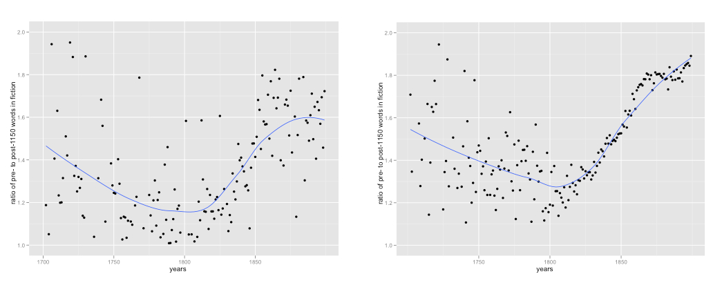 But they do that to different degrees, and as a result the overall story is one of increasing differentiation — not just between “literary” and “nonliterary” diction — but between poetry and fiction as well.