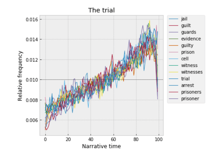 I’m not claiming that this is a good model of the way readers experience plot. We don’t have a good model of that yet! The more appropriate question to ask is: Does this correlate at all with anything human readers do?