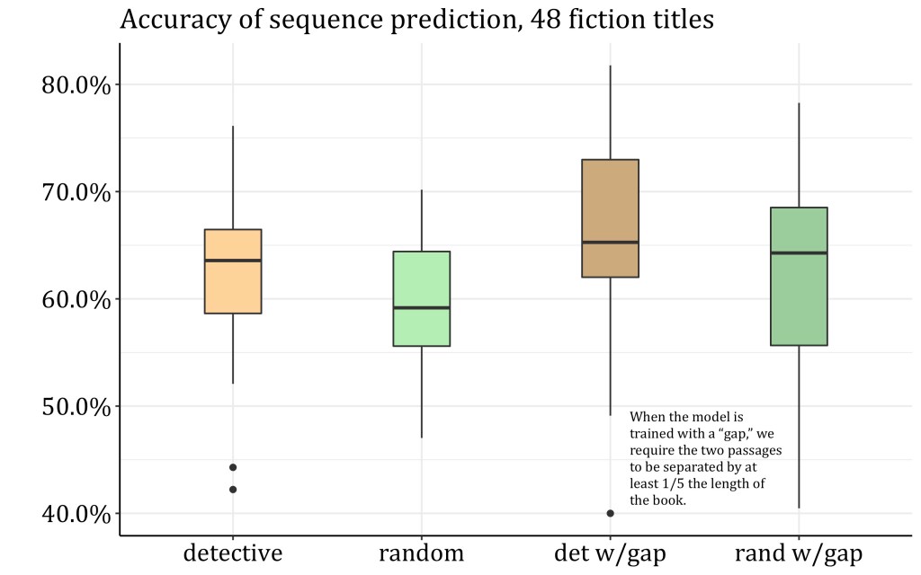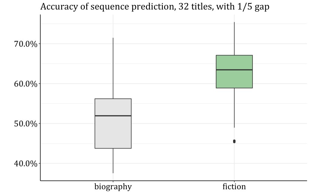 The image above also reveals that there are broad, consistent differences between books. For both people and models, some stories are easier to predict than others.