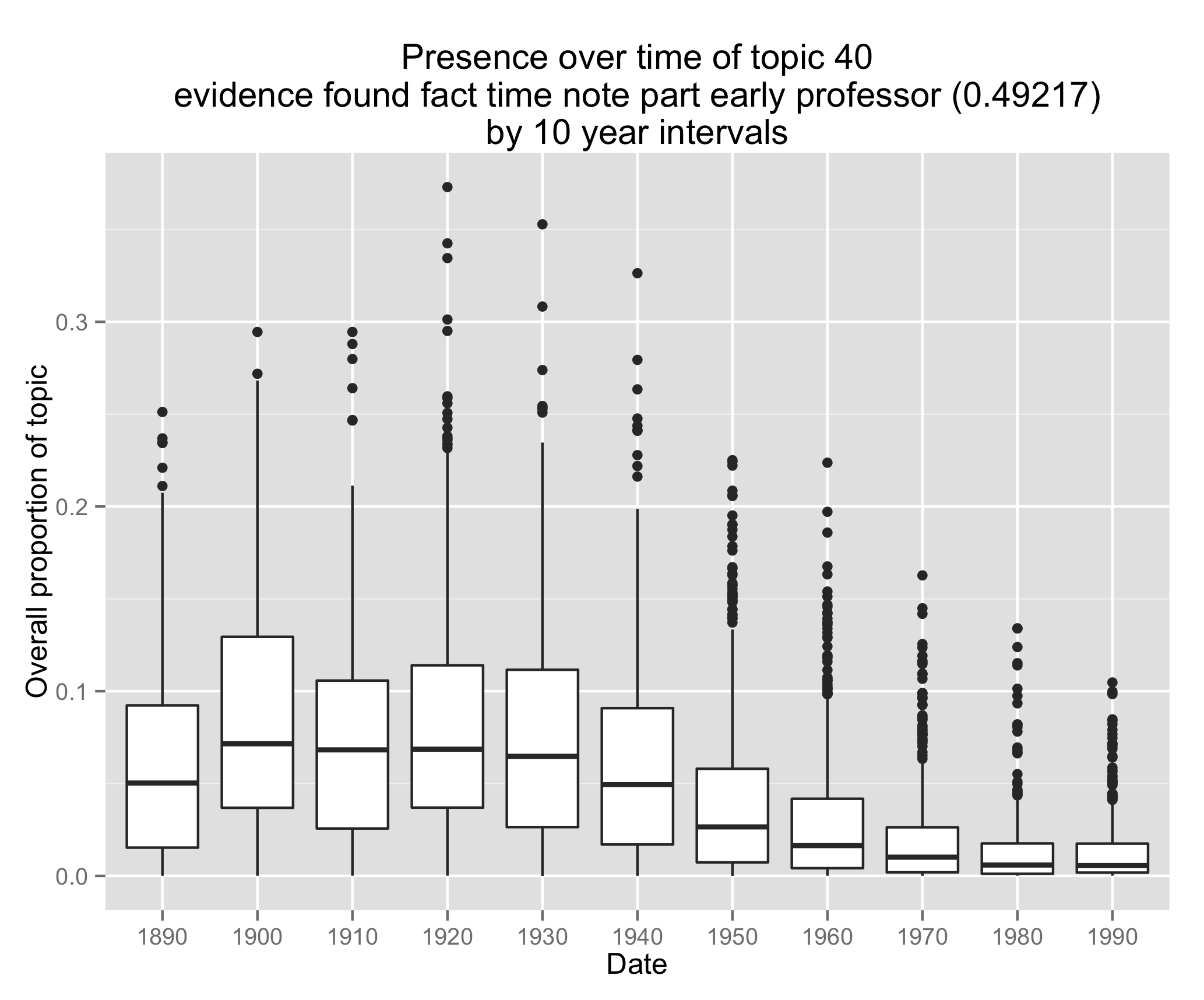 Historians don’t have to compress their material as severely. Since history is notoriously a story of conflict, and our sources were interested participants, few people expect historians to represent all aspects of the past with one correctly balanced model. On the contrary, historical inquiry is usually about comparing perspectives. Machine learning is not the only way to do this, but it can help. For instance, researchers can measure differences of perspective by training multiple models on different publication venues or slices of the timeline.[6]